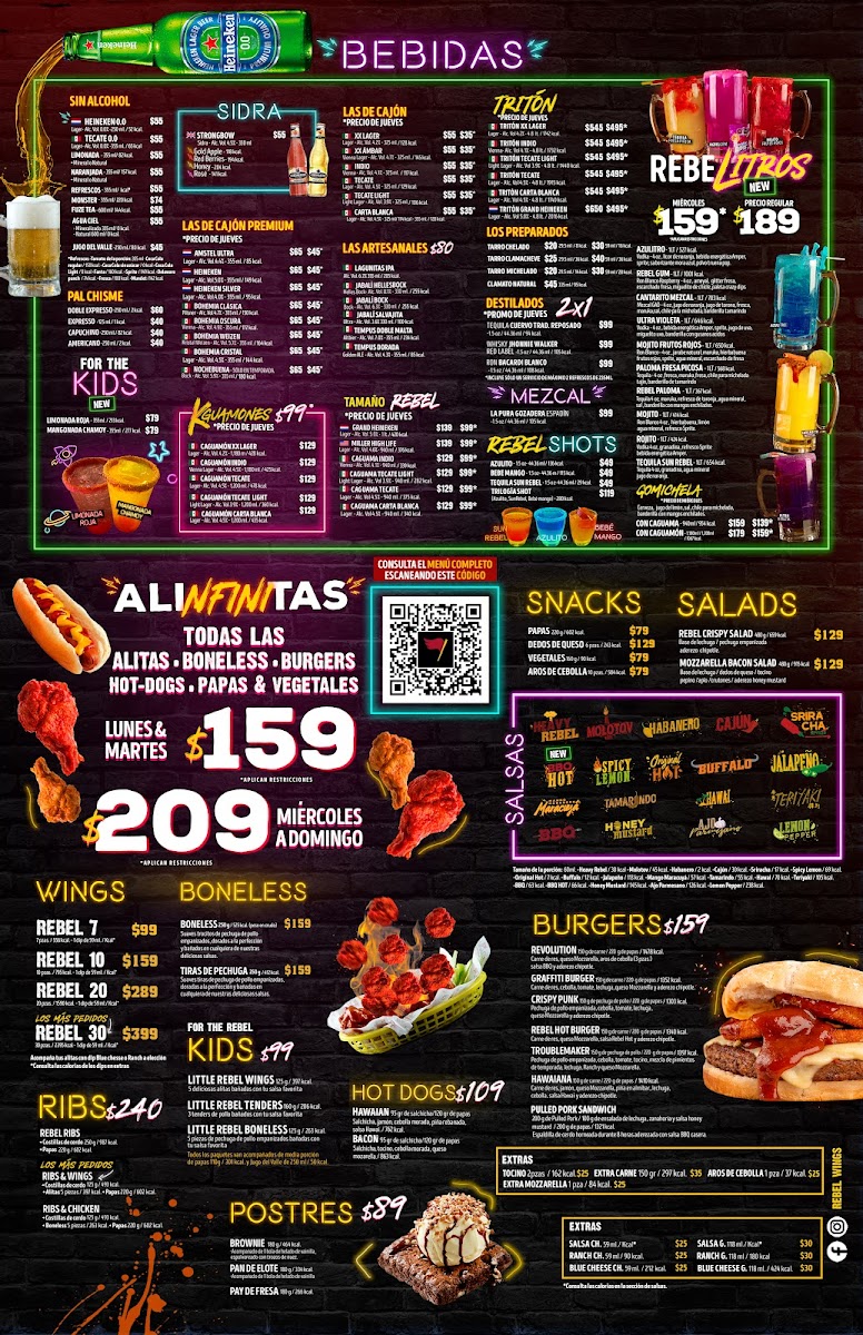 Welcome to Rebel Wings Azcapotzalco, a haven for wing lovers located in the bustling Centro Comercial Pabellón Azcapotzalco. This vibrant eatery is famous for its array of mouthwatering wing options that promise to delight your taste buds. Customers rave about the infinite high menu, allowing you to savor three dishes at once, making it a perfect choice for food enthusiasts who love variety.